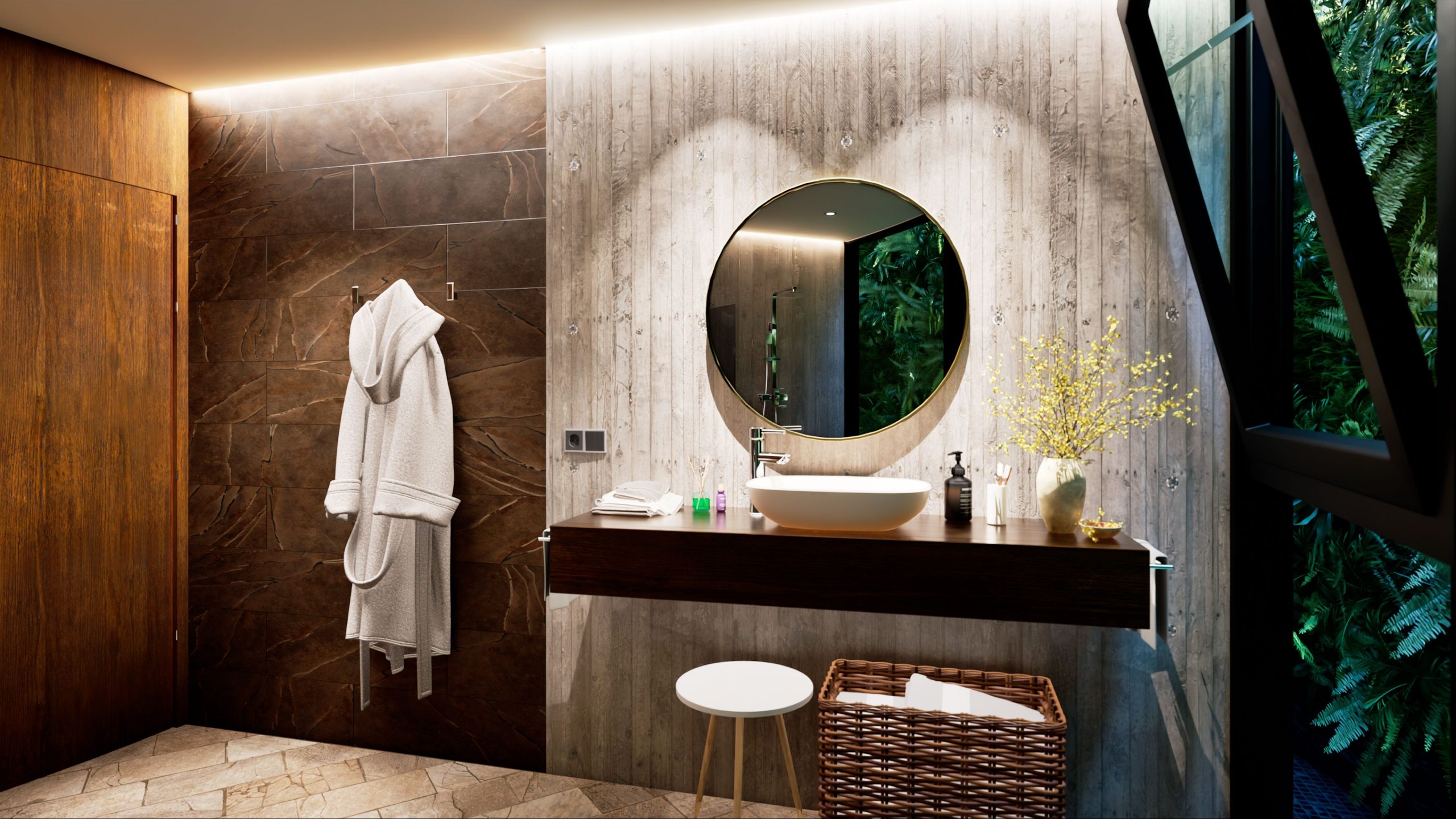 Los materiales has sido realizados en Unreal Engine. En cuanto a los muebles y elementos decorativos, son, en su mayoría, descargados de varias webs especializadas para posteriormente ser retocados en 3DS Max . En cuanto a los render finales, su balance de color, contraste y niveles, están retocados en el programa Photoshop.